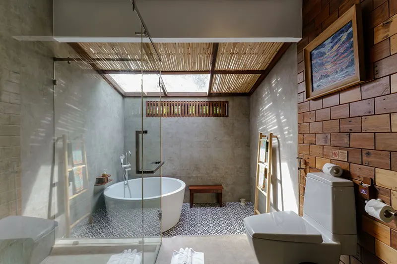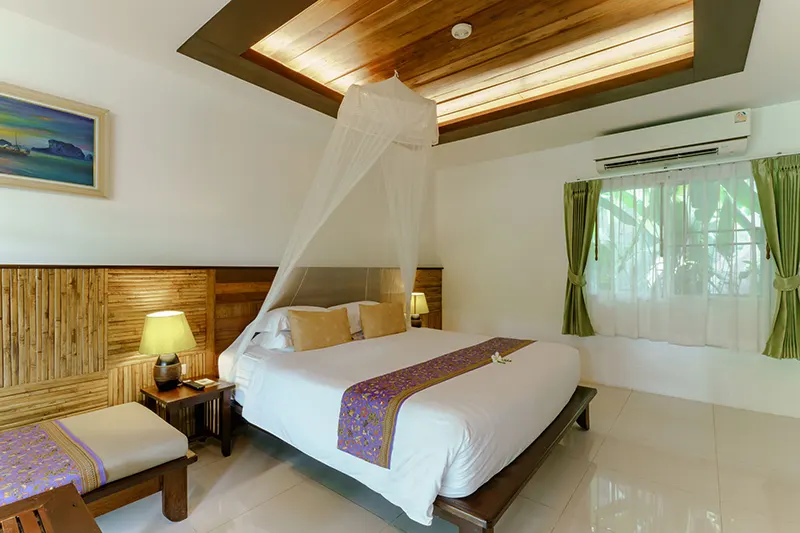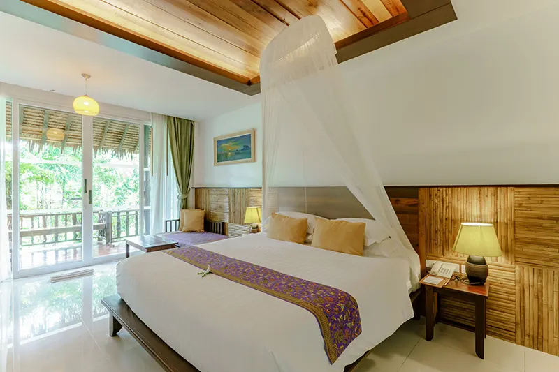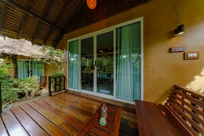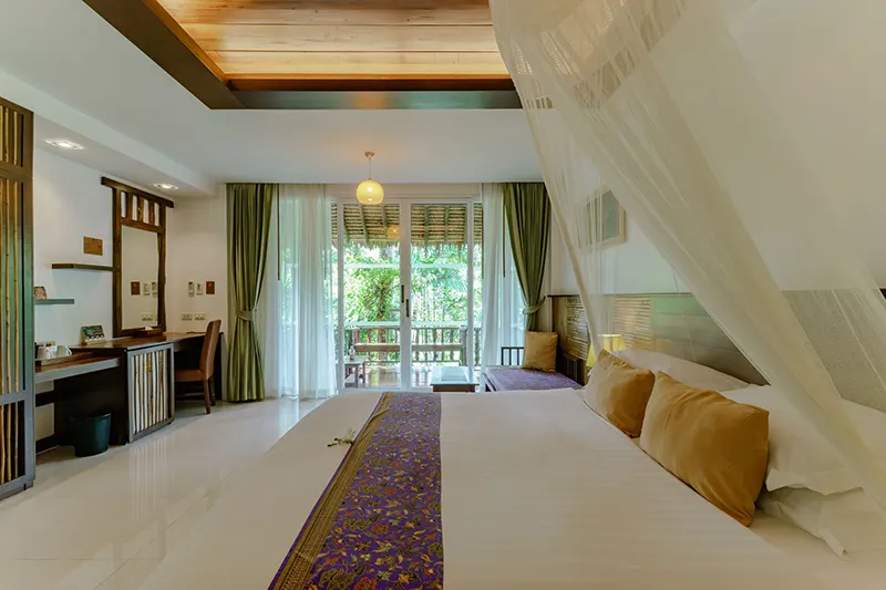 The Coconut Cottages, each spanning 55 sqm, are a charming choice for guests seeking a serene and spacious stay. With seven cottages in total, each is equipped with an en-suite bathroom featuring a round, deep soaking bathtub and a separate shower area. Renovated in 2020, these cottages are thoughtfully designed for comfort and relaxation. Situated near the central pool and reception area, they offer easy access to key resort amenities. The Coconut Cottages are also close to the Pano Cliff View Cottages, Sainai Cottages, and Sainai Forest Villa.