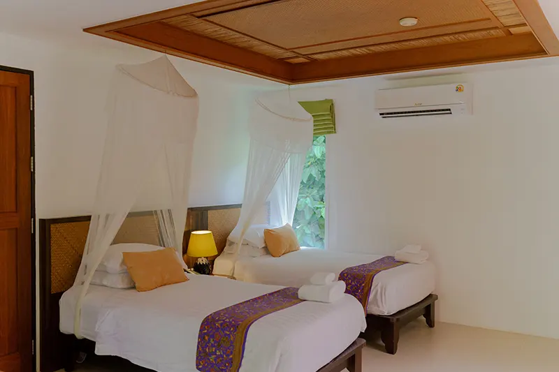 Opened in 2013 and fully renovated in 2024, the Family Cottages have been enhanced to elevate the guest experience, including the addition of a larger bathtub for added comfort. These cottages are located near the lotus pond and the Sainai Cottages, providing a peaceful environment. Fully equipped with in-room amenities, toiletries, a coffee and tea corner, and a kitchenette, the Family Cottages offer a complete home-away-from-home experience.