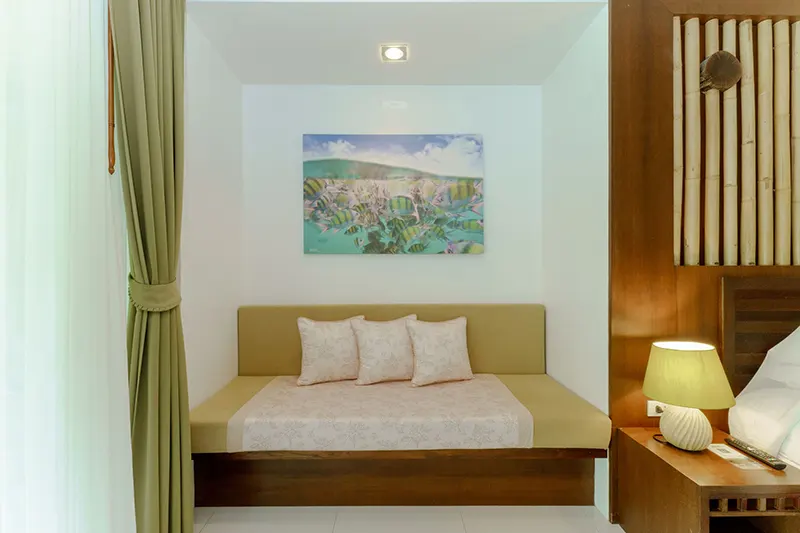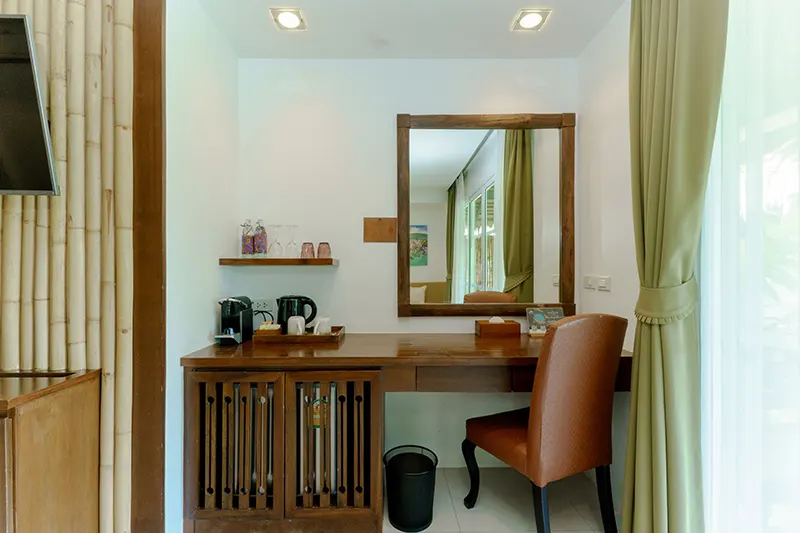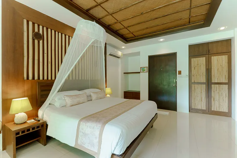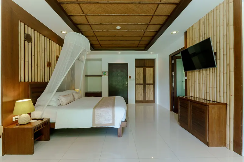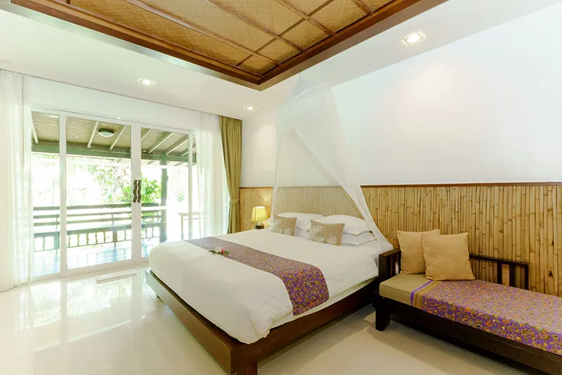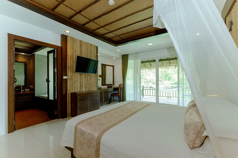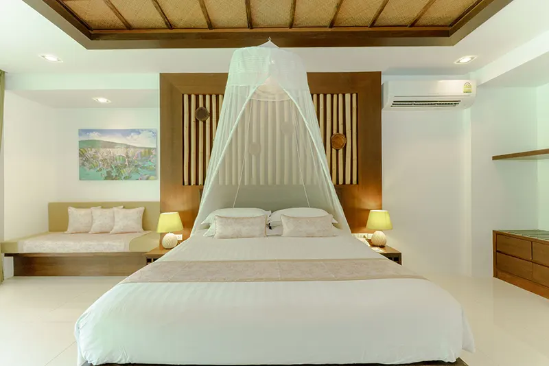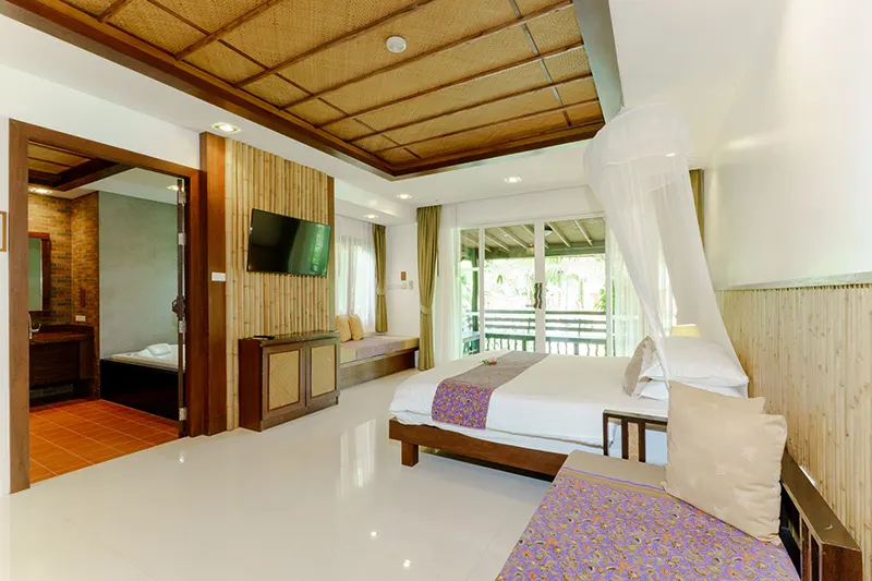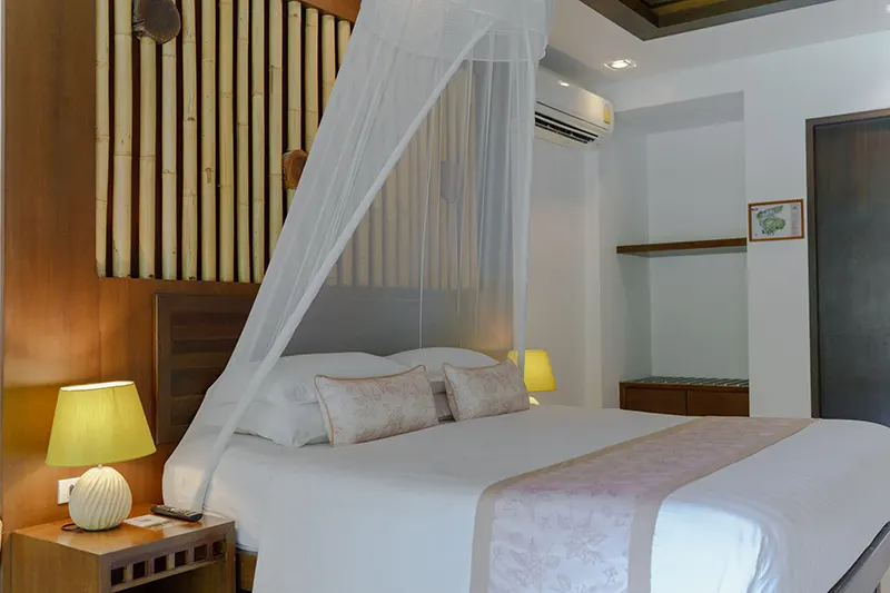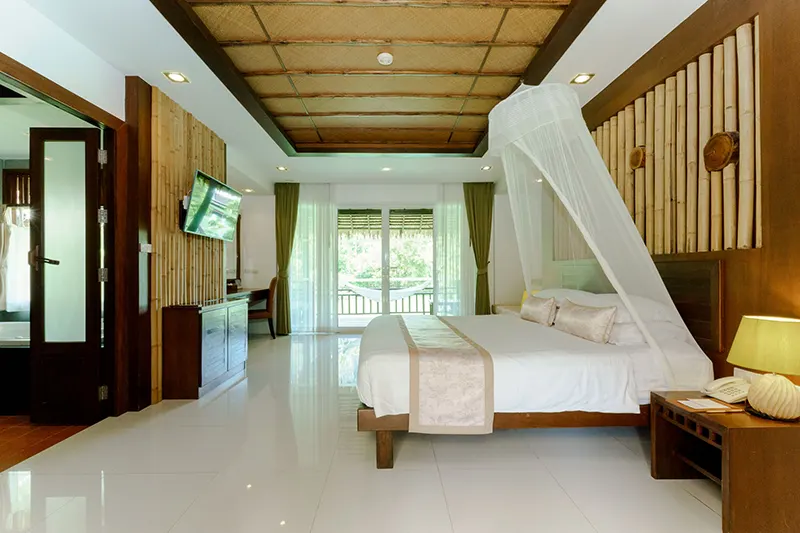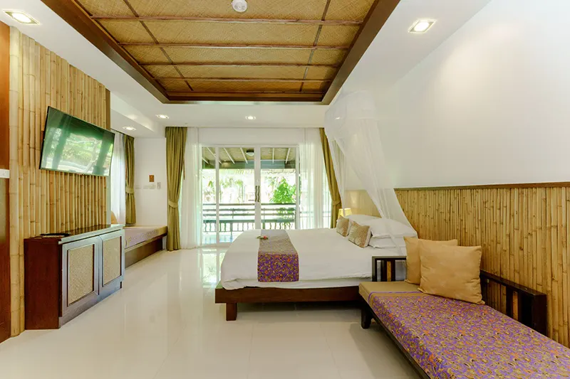 The Grand Pond View Cottages, each 60 sqm.; feature a detached design with stunning views of the pond. There are seven cottages in total, each equipped with a double bed and an en-suite bathroom featuring a whirlpool spa bath and a separate shower room. Opened in December 2015, these cottages offer a peaceful retreat with either a serene pond view and nature view. Grand Pond View Cottages located near Sai Nai Restaurant and are ideal for guests seeking a tranquil environment.