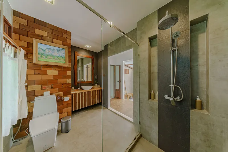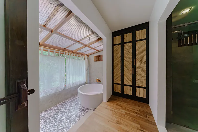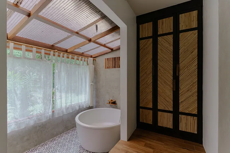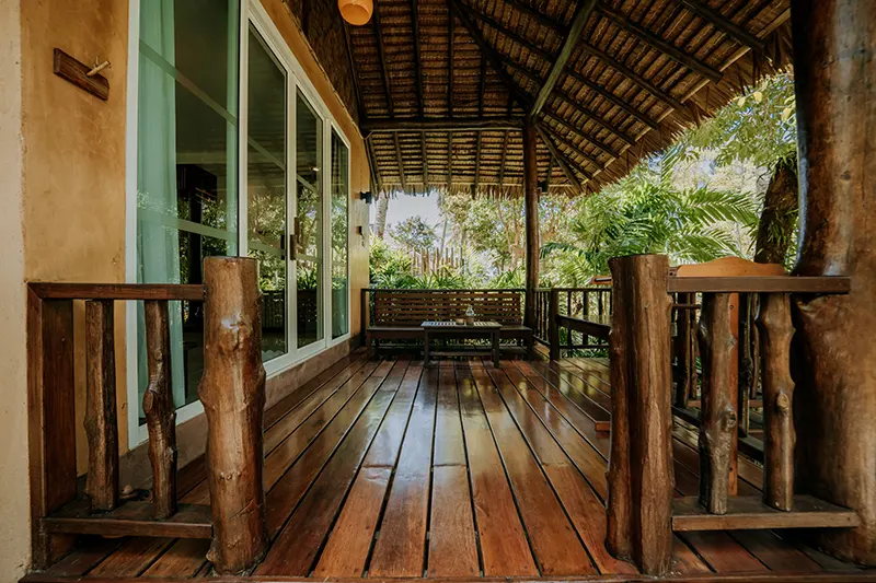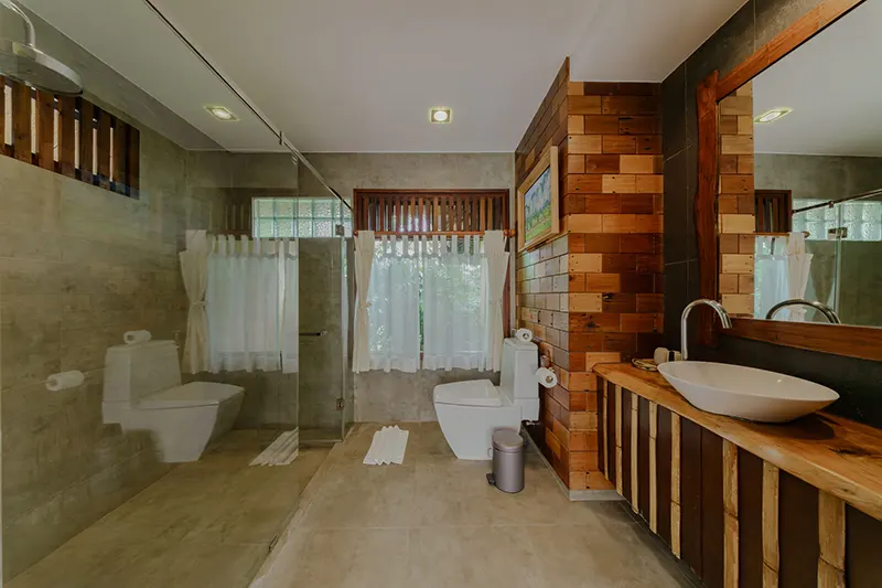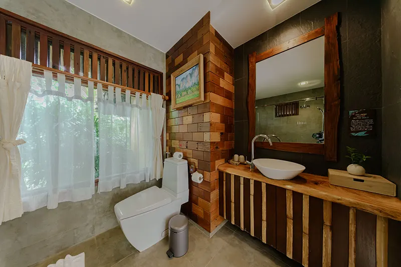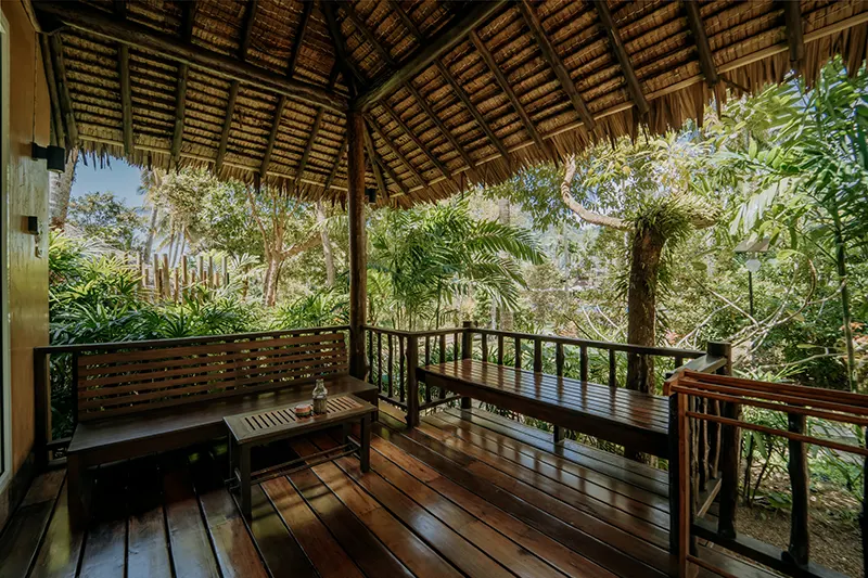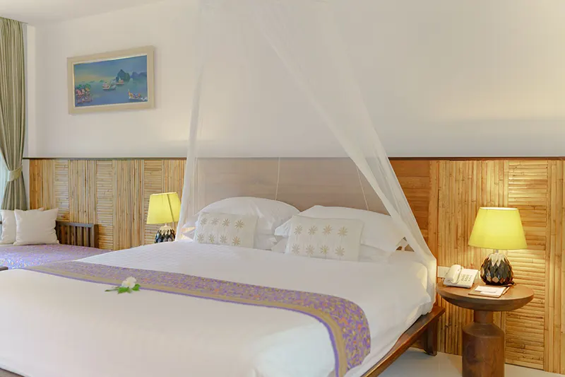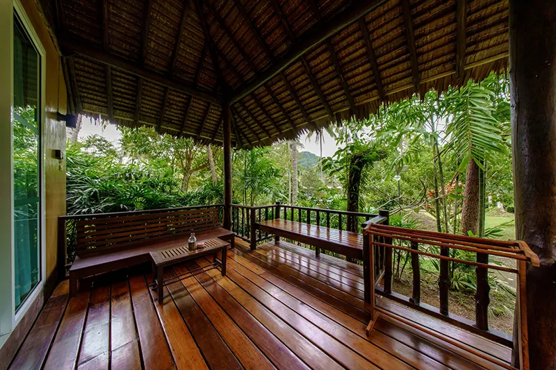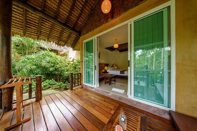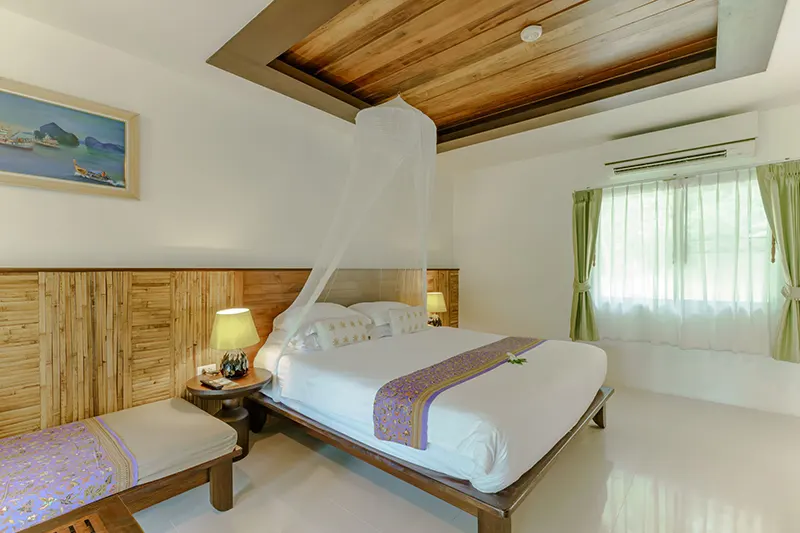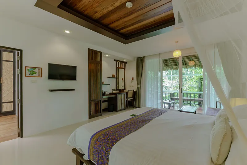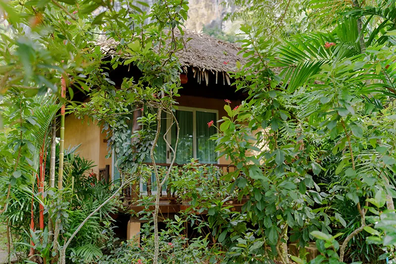The Pano Cliff View Cottages, each measuring 55 sqm, offer a unique and breathtaking stay with panoramic views of lush greenery and a stunning limestone cliff backdrop, visible from the en-suite bathroom. Renovated in 2020, these cottages have become a standout feature of the resort. The bathrooms are equipped with a round-shaped deep soaking bathtub and a separate shower area, creating a serene and luxurious retreat. Located just 50 meters from the pool and within easy reach of the reception and fitness center, the cottages blend seamlessly with the natural surroundings. They are also in close proximity to the Coconut Cottages, Sainai Cottages, and Sainai Forest Villa, making them ideally situated for guests to enjoy both tranquility and convenience.